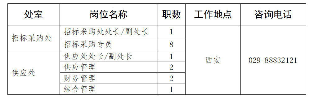 西安尊龙凯时-人生就是搏资产管理有限公司供应链分公司(以下称“供应链分公司”)成立于2022年8月,该公司是中国尊龙凯时-人生就是搏集团采购的实施机构,主要负责组织实施中国尊龙凯时-人生就是搏集团级集中采购和公司本部采购实施,供应链分公司独立运营,按规范合规、标准专业、市场运营的原则,构建中国尊龙凯时-人生就是搏集团专业化的招标采购公司。本次面向公司内部公开招聘岗位信息如下:
